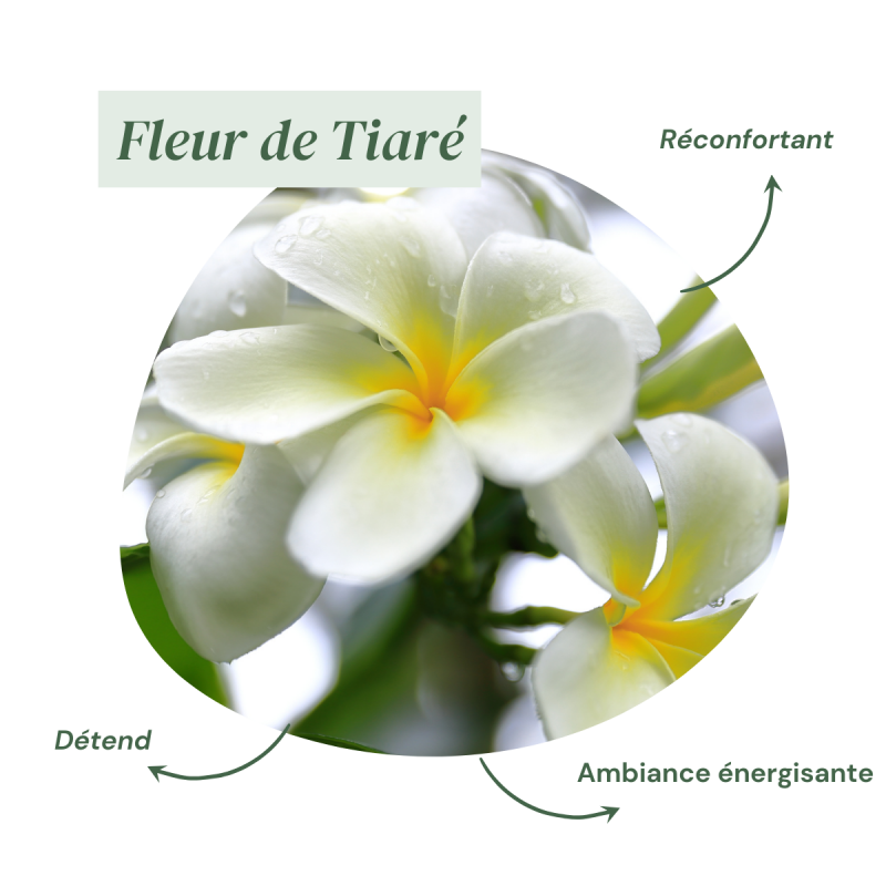 Le CADE parfume Fleur de Tiaré dégage une effluve reconfortante et procure un moment de détante, avec une ambiance énergisante, et de vacance sur les iles.